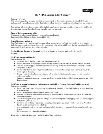 YOUR POLICY DOCUMENT Static Holiday Home Policy Freephone: 0800 614 849 The Static Home, Contents, Personal Effects and Liability sections of this policy are underwritten by Aviva Insurance Limited. ... Retrieve Doc